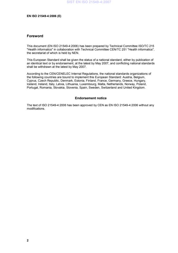 This document (EN ISO 21549-4:2006) has been prepared by Technical Committee ISO/TC 215 "Health informatics" in collaboration with Technical Committee CEN/TC 251 "Health informatics", the secretariat of which is held by NEN.