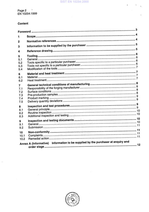 Keywords: EN 10254:1999, steel closed die forgings, general technical delivery conditions, CEN standard, hot forgings, warm forgings, upset forgings, forging delivery specifications.