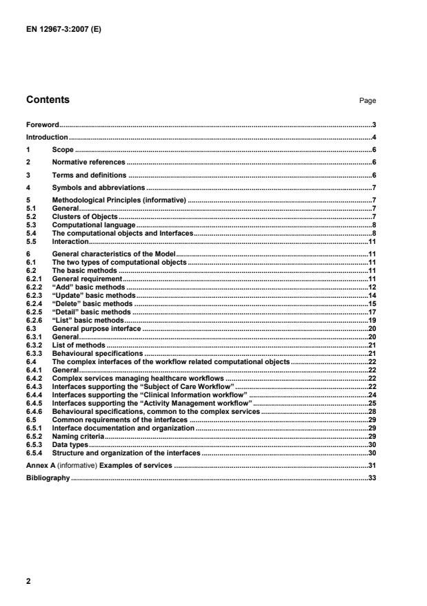This part of the standard specifies the fundamental characteristics of the computational model to be implemented by a specific architectural layer of the information system (i.e. the middleware) to provide a comprehensive and integrated interface to the common enterprise information and to support the fundamental business processes of the healthcare organisation, as defined in the document “Health Informatics – Service Architecture - Part 1: Enterprise Viewpoint”. The computational model is specified without any –explicit or implicit- assumption about the physical technologies, tools or solutions to be adopted for its physical implementation in the various target scenarios. The specification is nevertheless formal, complete and non-ambiguous enough to allow implementers to derive an efficient design of the system in the specific technological environment that will be selected for the physical implementation. The computational model provides the basis for ensuring consistency between different engineering and technology specifications (including programming languages and communication mechanisms) since they must be consistent with the same computational object model. This consistency allows open inter-working and portability of components in the resulting implementation. This specification does not aim at representing a fixed, complete, specification of all possible interfaces that may be necessary for any requirement of any healthcare enterprise. It specifies only a set of characteristics –in terms of overall organisation and individual computational objects, identified as fundamental and common to all healthcare organisations, and that are satisfied by the computational model implemented by the middleware. Preserving consistency with the provisions of this standard, physical implementations shall allow extensions to the standard computational model in order to support additional and local requirements. Extensions shall include both the definition of additional properties in the objects of the standard model and the implementation of entirely new objects. Also this standard specification shall be extendable over time according to the evolution of the applicable standardisation initiatives. The specification of extensions shall be carried out according to the methodology defined in paragraph 7 “Methodology for extensions” of document EN 12967-1 “Health Informatics – Service Architecture - Part 1: Enterprise Viewpoint”, which identifies a set of healthcare common information services, describing their need and the methodology through which they will be used. These are only the minimal identifiable set of services according to the needs of the healthcare enterprise, and constituting the 'middleware' platform (i.e. integration platform) to serve as the basis for healthcare applications, e.g. EHR or patient administration. 2 Normative references Not applicable. 3 Terms and definitions For the purposes of this document, the following terms and definitions apply. 3.1 interface abstraction of the behaviour of an object that consists of a subset of the possible interaction mechanisms of that object, together with the set of constraints when that interaction occurs
