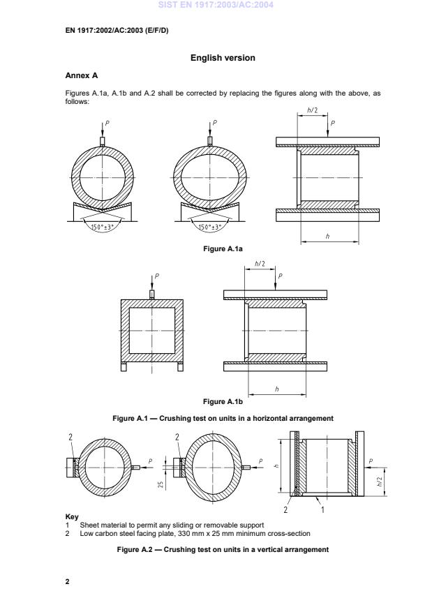 EN 1917:2002/AC:2003 is a corrigendum published by the European Committee for Standardization (CEN). Its full title is "Concrete manholes and inspection chambers, unreinforced, steel fibre and reinforced". This standard covers: TC - Annex J, modifications to step 8 and Figures A.1 and A.2