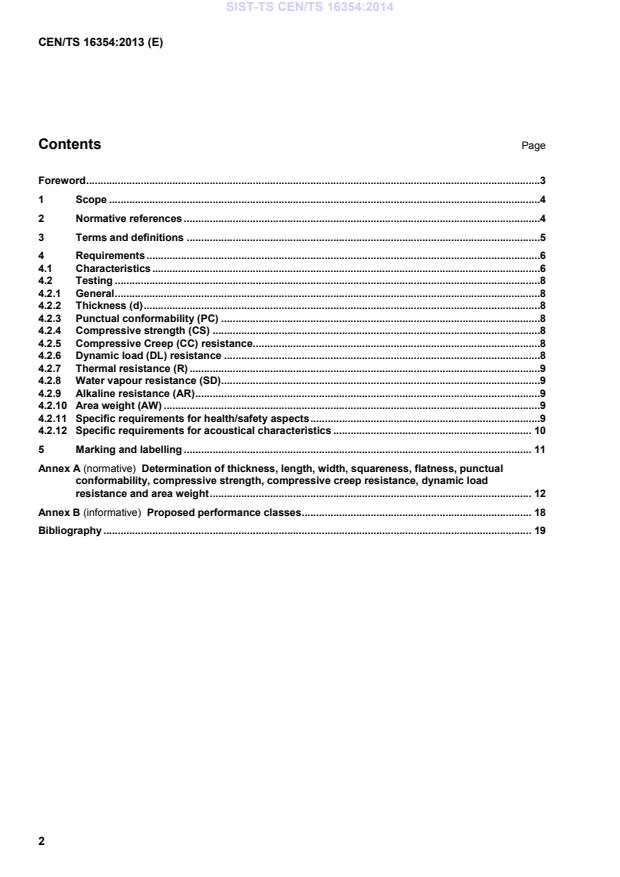 CEN/TS 16354:2013 is a technical specification published by the European Committee for Standardization (CEN). Its full title is "Laminate floor coverings - Underlays - Specification, requirements and test methods". This standard covers: This Technical Specification specifies test methods for the determination of the technical characteristics of underlays under laminate floor coverings. It includes minimum performance requirements for the underlay-flooring system to give satisfactory service and to encourage the consumer to make an informed choice. It also specifies requirements for marking and packaging. Underlays pre-attached to the laminate flooring coverings are not covered by this Technical Specification. Underlays for laminate floor coverings intended for use in electrostatically sensitive areas like computer rooms, etc., are not covered by this Technical Specification.