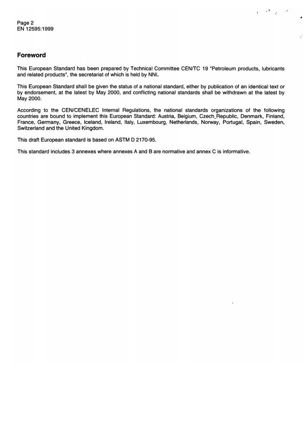 EN 12594:1999 is a standard published by the European Committee for Standardization (CEN). Its full title is "Bitumen and bituminous binders - Preparation of test samples". This standard covers: This European Standard specifies a method for preparing samples of bituminous binders for the testing of their properties. WARNING: The use of this standard can involve hazardous materials, operations and equipment. This standard does not purport to address all of the safety problems associated with its use. It is the responsibility of the user of this standard to establish appropriate safety and health practices and determine the applicability of regulatory limitations prior to use.