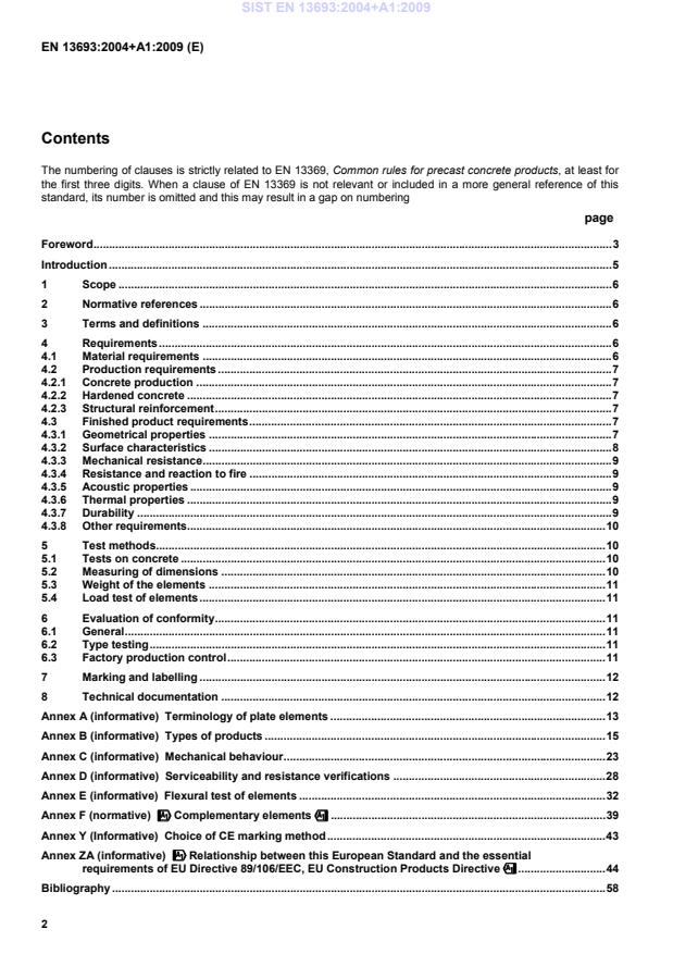 The numbering of clauses is strictly related to EN 13369, Common rules for precast concrete products, at least for the first three digits. When a clause of EN 13369 is not relevant or included in a more general reference of this standard, its number is omitted and this may result in a gap on numbering