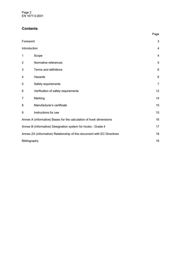 This Part of EN 1677 specifies requirements for forged steel lifting hooks of grade 4 having latch and eye up to 31,5 t WLL, mainly for use in: chain slings according to EN 818-5; steel wire rope slings; textile slings according to prEN 1492-1, prEN 1492-2; intended for lifting objects, materials or goods. This part of EN 1677 does not apply to hand forged hooks. The hazards covered by this part of EN 1677 are identified in clause 4.