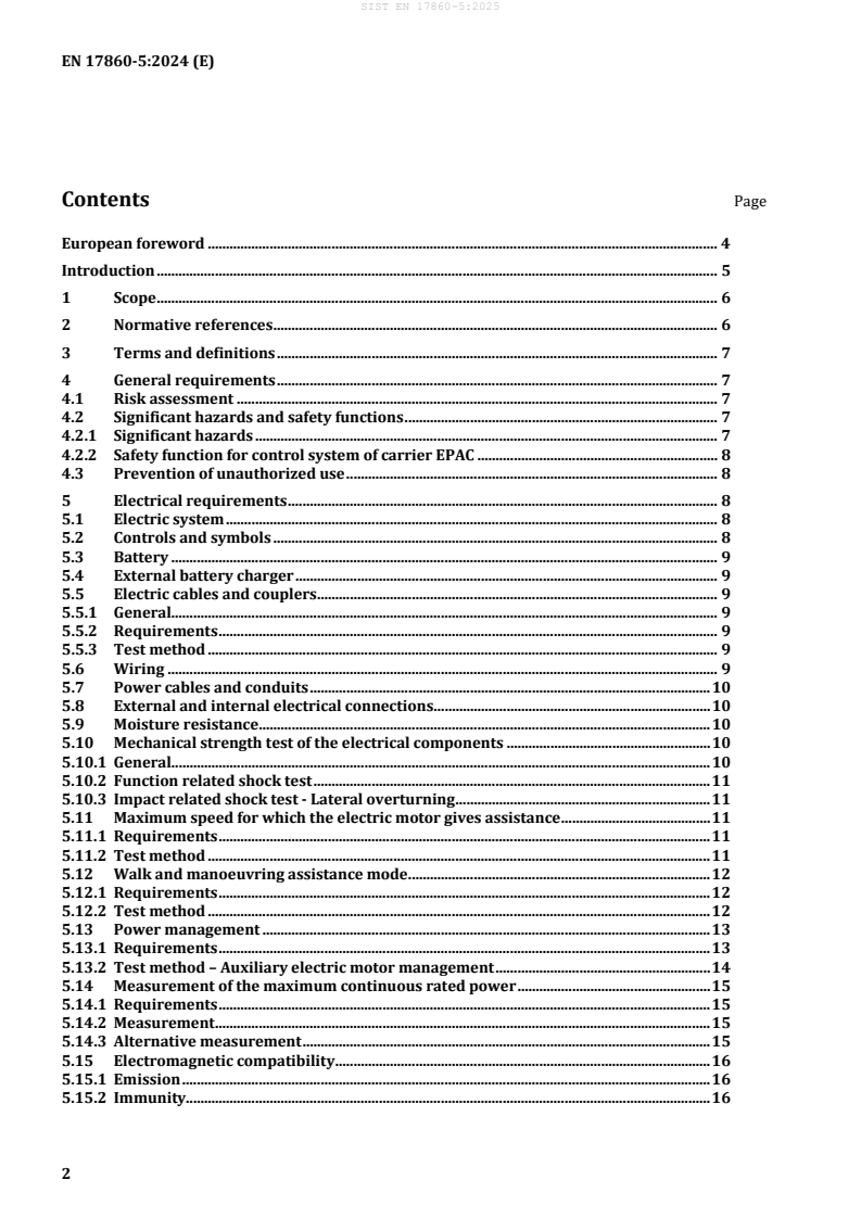 Keywords: EN 17860-5:2024, carrier cycles electrical aspects, EPAC, EPACT, battery safety, charger requirements, SELV ≤ 60 V, motor power management, EMC, anti‑tampering.