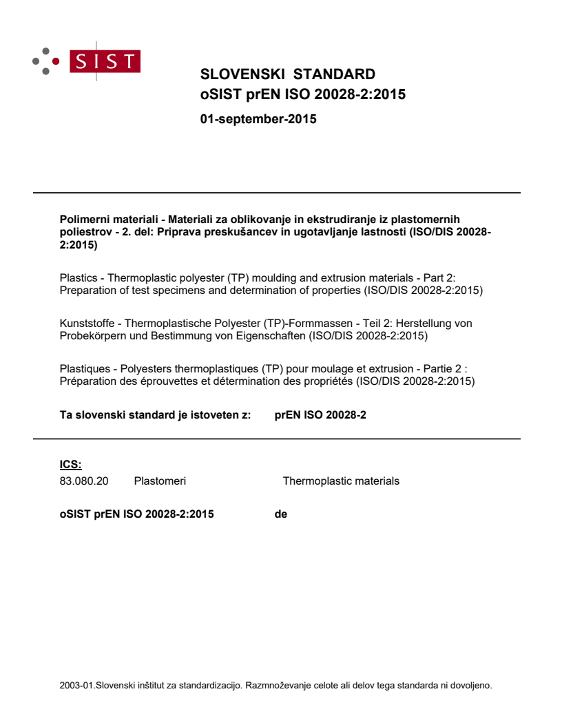 poliestrov - 2. del: Priprava preskušancev in ugotavljanje lastnosti (ISO 20028-