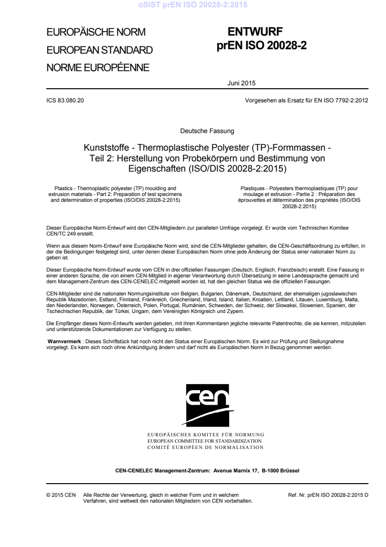 ICS 83.080.20 Supersedes EN ISO 7792-2:2012
