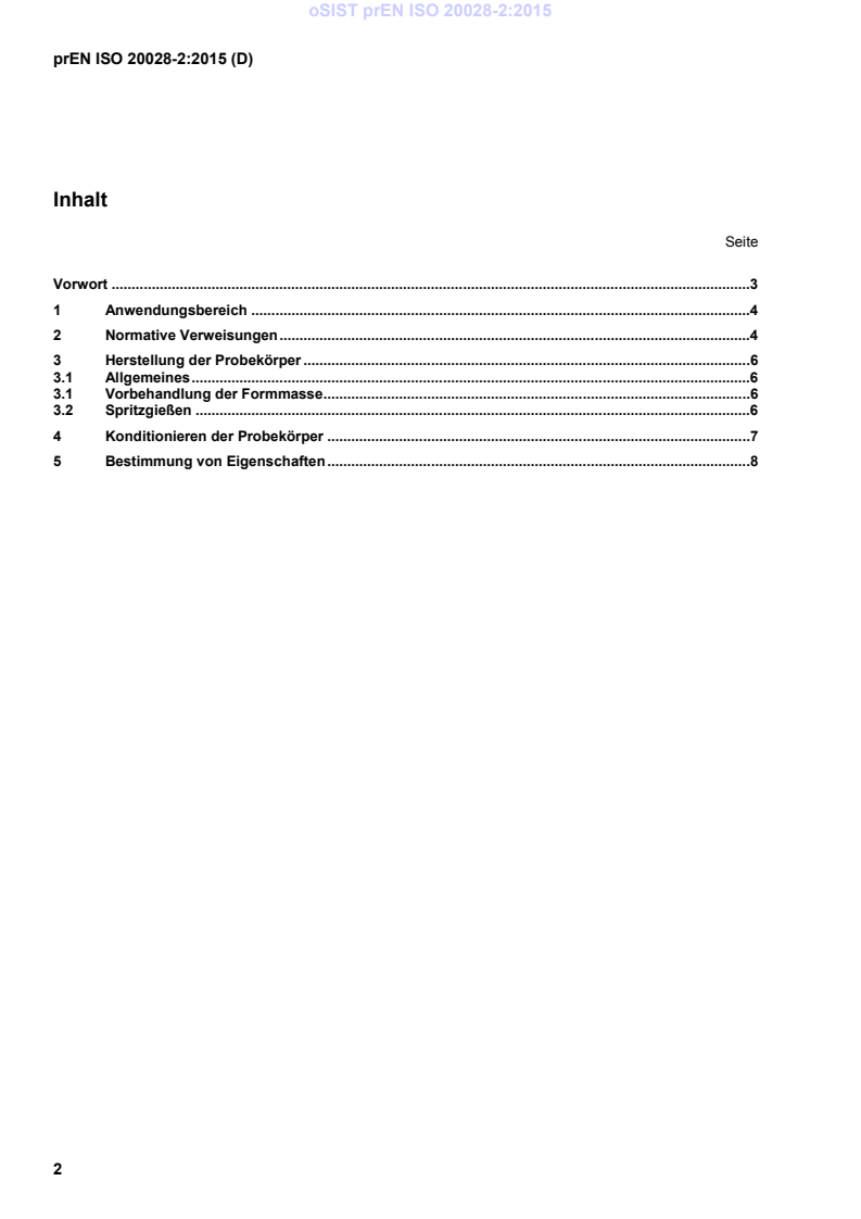 Dieses Dokument (prEN ISO 20028-2:2015) wurde vom Technischen Komitee ISO/TC 61 „Plastics“ in