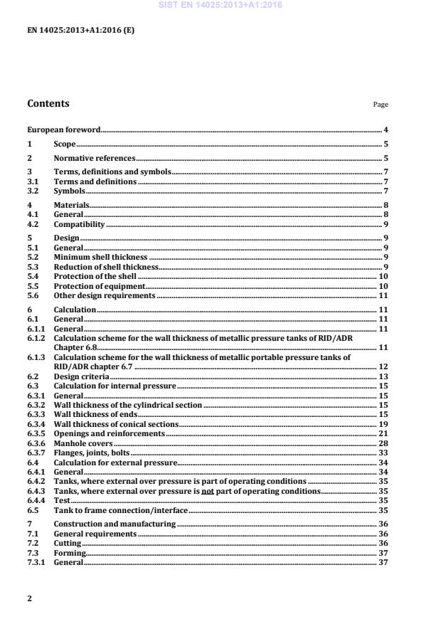 EN 14025:2013+A1:2016 is a standard published by the European Committee for Standardization (CEN). Its full title is "Tanks for the transport of dangerous goods - Metallic pressure tanks - Design and construction". This standard covers: This European Standard specifies the minimum requirements for the design and construction of metallic pressure tanks having a maximum working or test pressure exceeding 50 kPa (0,5 bar), for the transport of dangerous goods by road and rail and sea. This European Standard includes requirements for openings,closures and structural equipment; it does not cover requirements of service equipment. For tanks for the transport of cryogenic liquids, EN 13530-1 and EN 13530-2 apply. NOTE 1 Design and construction of pressure tanks according to the scope of this European Standard are primarily subject to the requirements of RID/ADR, 6.8.2.1, 6.8.3.1 and 6.8.5, as relevant. In addition, the relevant requirements of RID/ADR, columns 12 and 13 of Table A to chapter 3.2, 4.3 and 6.8.2.4 apply. For the structural equipment subsections 6.8.2.2 and 6.8.3.2 apply, as relevant. The definitions of RID/ADR 1.2.1 are referred to. For portable tanks see also Chapter 4.2 and Sections 6.7.2 and 6.7.3 of RID and ADR. In addition, the relevant requirements of RID/ADR, columns 10 and 11 of Table A to Chapter 3.2, 4.2, 6.7.2 and 6.7.3 apply. The paragraph numbers above relate to the 2013 issue of RID/ADR which are subject to regular revisions. This can lead to temporary non-compliances with EN 14025. It is important to know that requirements of RID/ADR take precedence over any clause of this standard. NOTE 2 This standard is applicable to liquefied gases including LPG, however for a dedicated LPG standard see EN 12493. If not otherwise specified, provisions which take up the whole width of the page apply to all kind of tanks. Provisions contained in a single column apply only to: road and rail pressure tanks according to RID/ADR chapter 6.8 (left-hand column); ortable tanks according to RID/ADR chapter 6.7 right-hand column