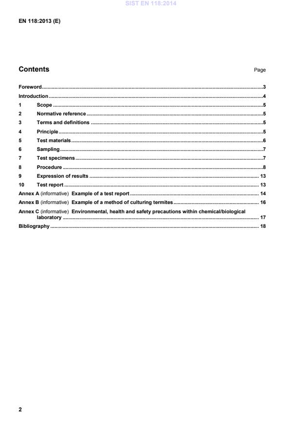 Ta evropski standard določa metodo za ugotavljanje preventivnega delovanja zaščitnega sredstva za les proti Reticulitermes santonensis (evropskim termitom), ko je zaščitno sredstvo uporabljeno v sklopu površinske obdelave lesa. Ta metoda se uporablja za: – v vodi netopne kemikalije, ki se preučujejo kot aktivne sestavine, – organske formulacije, ki so dobavljene ali pripravljene v laboratoriju z redčenjem koncentratov, – organske formulacije, ki dispergirajo v vodi in so dobavljene ali pripravljene v laboratoriju z redčenjem koncentratov ter – v vodi topne materiale, na primer sol.