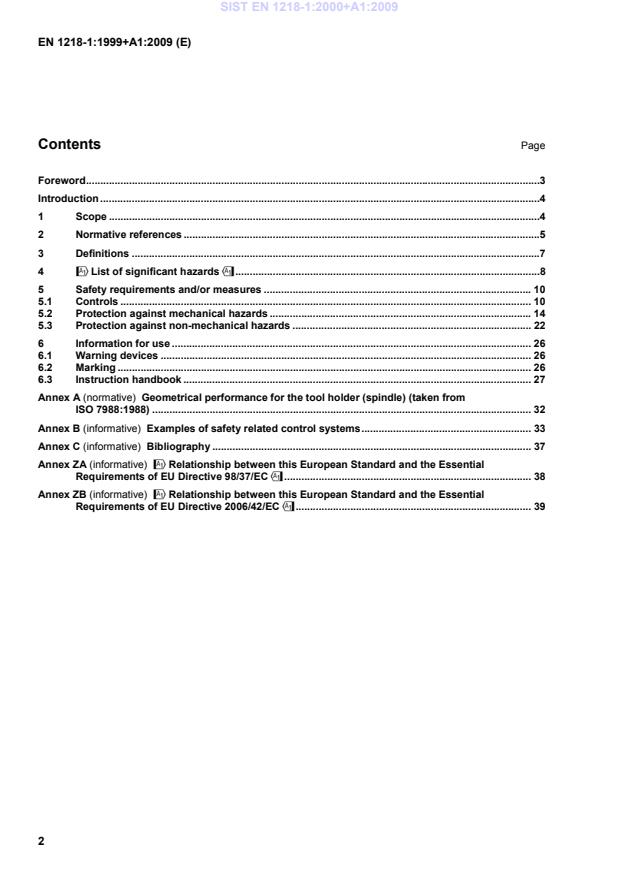 !Relationship between this European Standard and the Essential Requirements of EU Directive 2006/42/EC" . 39 SIST EN 1218-1:2000+A1:2009