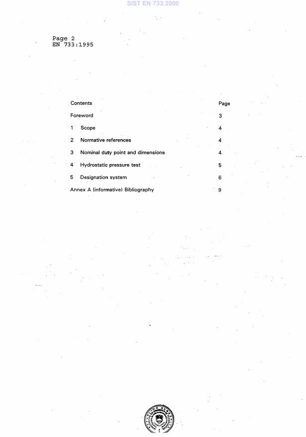 Keywords: EN 733:1995, end-suction centrifugal pumps, PN 10, nominal duty point, pump dimensions, bearing bracket, designation system, European Standard.