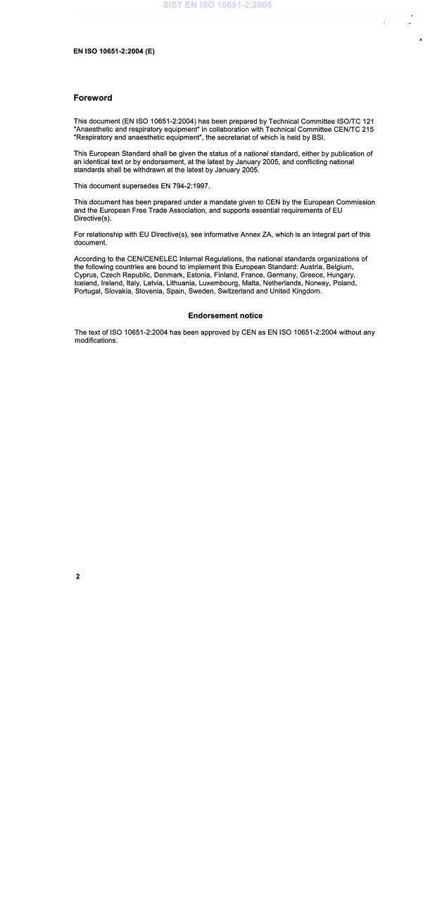 EN ISO 10651-2:2004 is associated with the following European legislation: EU Directives/Regulations: 93/42/EEC; Standardization Mandates: M/023. When a standard is cited in the Official Journal of the European Union, products manufactured in conformity with it benefit from a presumption of conformity with the essential requirements of the corresponding EU directive or regulation.