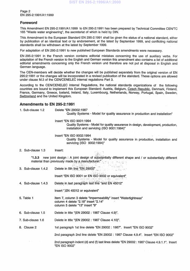 Ta slovenski standard je istoveten z: EN 295-2:1991/A1:1999