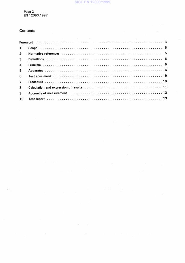 EN 12090:1997 is a standard published by the European Committee for Standardization (CEN). Its full title is "Thermal insulating products for building applications - Determination of shear behaviour". This standard covers: This European Standard specifies equipment and procedures for determining the shear behaviour. It is applicable to thermal insulating products. Note 1: The tests described in this standard do not determine pure shear behaviour, but measure the effects of applying two opposite for the major faces of the test specimen. The test is however calles shear in this text by convention.