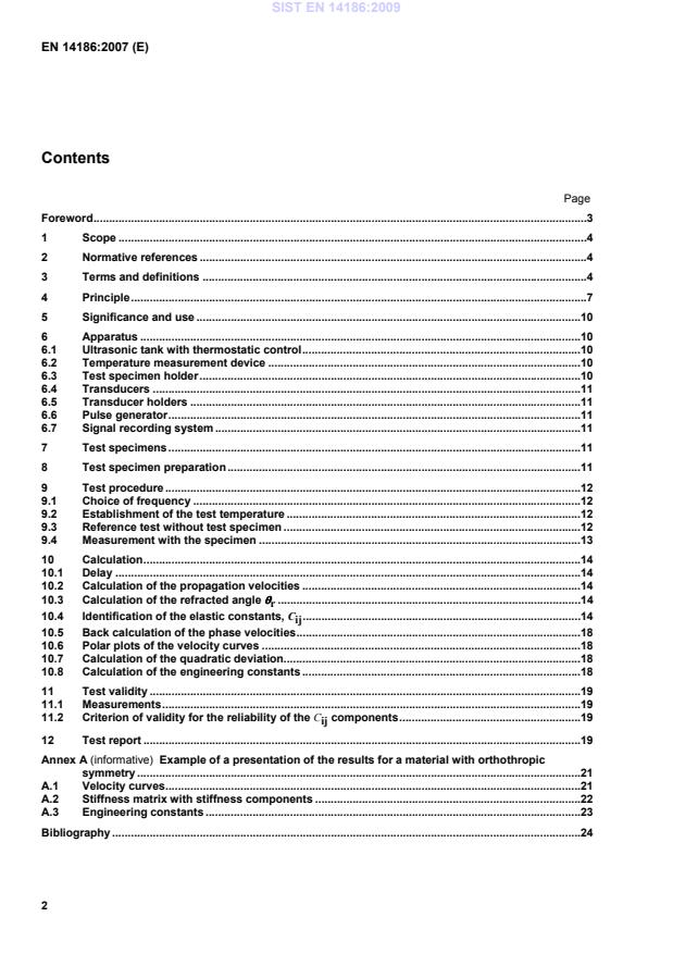 =654321665544332313232212131211654321000000000000000000000000σσσσσσεεεεεεSSSSSSSSSSSS NOTE 2 For symmetries of higher level than the orthotropic symmetry, the Cij and Sij matrices have the same form as here above. Only the number of independent components reduces. 3.2 engineering constants compliance matrix components of an orthotropic material which are in terms of engineering constants: []−−−−−−=1213332223111333322211123331222111100000001000000100010001GGEEvEvEvEEvEvEvESij where E11, E22 and E33 are the elastic moduli in directions 1, 2 and 3 respectively; G12, G13 and G23 are the shear moduli in the corresponding planes; ν12, ν13, ν23 are the respective Poisson coefficients 3.3 angle of incidence θθθθi angle between the direction 3 normal to the test specimen front face and the direction ni of the incident wave (see Figure 1 and Figure 2) SIST EN 14186:2009