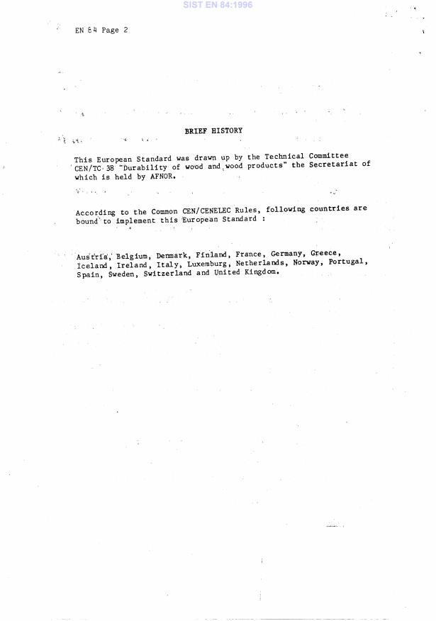 EN 84:1989 is a standard published by the European Committee for Standardization (CEN). Its full title is "Wood preservatives - Accelerated ageing of treated wood prior to biological testing - Leaching procedure". This standard covers: This specifies a method for the accelerated simulation of ageing by leaching of the product being applied as a treatment to wood. This method is used prior to biological testing.