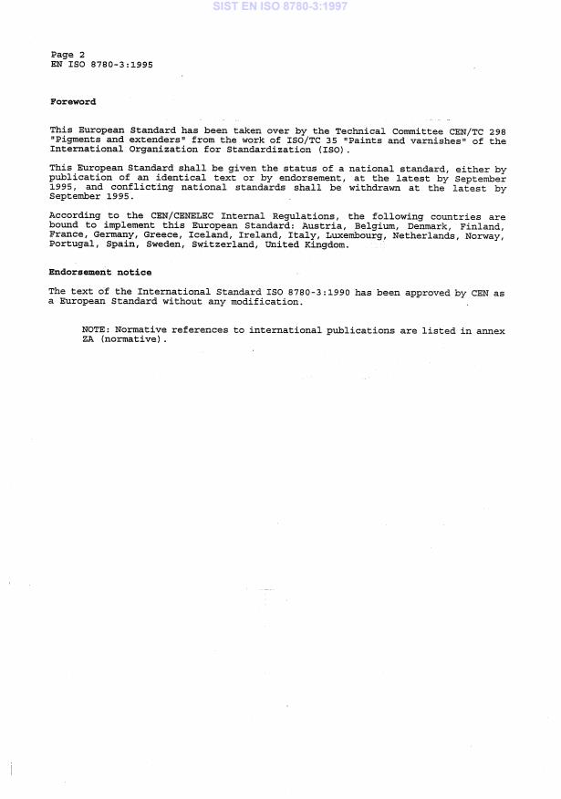EN ISO 8780-3:1995 is classified under the following ICS (International Classification for Standards) categories: 87.060.10 - Pigments and extenders. The ICS classification helps identify the subject area and facilitates finding related standards.