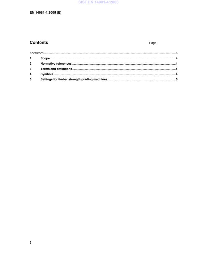 2 Contents Page Foreword.3 1 Scope.4 2 Normative references.4 3 Terms and definitions.4 4 Symbols.4 5 Settings for timber strength grading machines.5