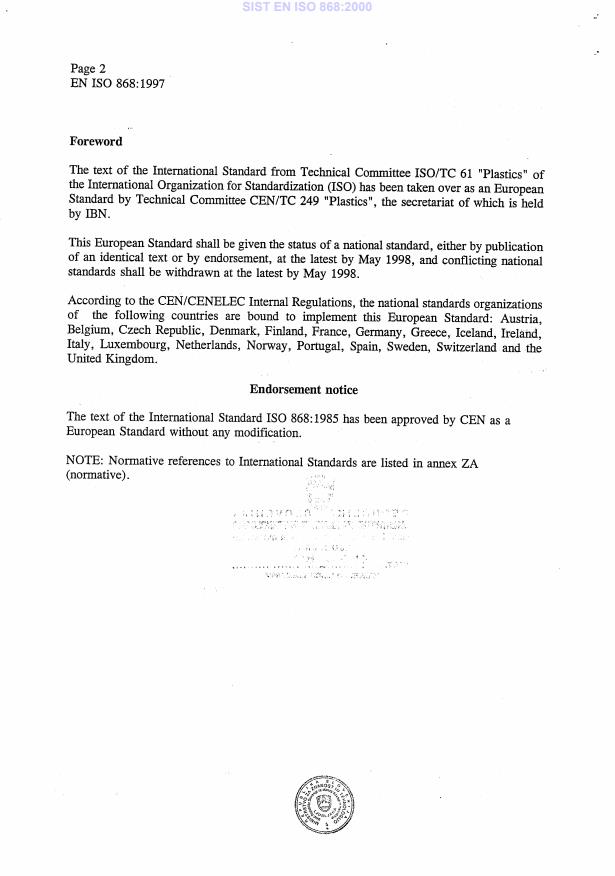 Ta slovenski standard je istoveten z: EN ISO 868:1997