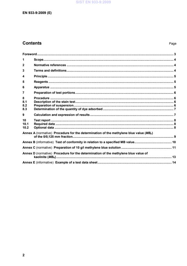 Procedure for the determination of the methylene blue value (MBF) of the 0/0,125 mm fraction . 9 Annex B (informative)
