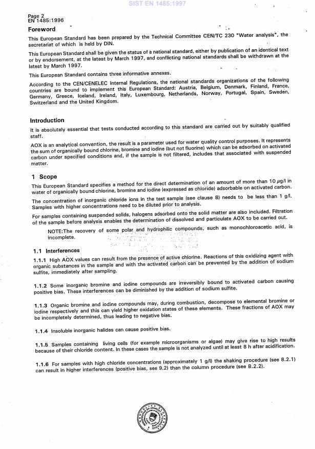 2003-01.Slovenski inštitut za standardizacijo. Razmnoževanje celote ali delov tega standarda ni dovoljeno.$2;Wasserbeschaffenheit - Bestimmung adsorbierbarer organisch gebundener Halogene (AOX)Qualité de l'eau - Dosage des halogenes des composés organiques adsorbables (AOX)Water quality - Determination of adsorbable organically bound halogens (AOX)13.060.50VQRYLExamination of water for chemical su