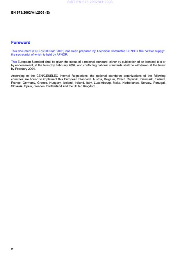 This amendment A1 modifies the European Standard EN 973:2002; it was approved by CEN on 12 June 2003.