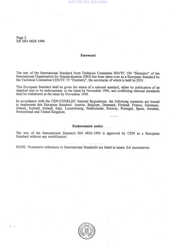 EN ISO 4824:1996 is classified under the following ICS (International Classification for Standards) categories: 11.060.10 - Dental materials. The ICS classification helps identify the subject area and facilitates finding related standards.