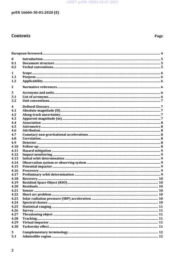 Part 01 is the glossary component of the prEN 16604 series (Space - Space Situational Awareness Monitoring). It is intended to be used alongside technical parts of the series that define data formats, performance requirements and operational procedures.