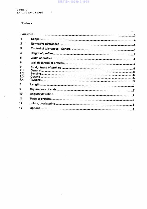 EN 10249-2:1995 is a standard published by the European Committee for Standardization (CEN). Its full title is "Cold formed sheet piling of non alloy steels - Part 2: Tolerances on shape and dimensions". This standard covers: This part of this European Standard specifies the tolerances on dimensions, squareness of ends, straightness and mass of cold formed non alloy steel sheet piles which are defined in EN 10249-1.