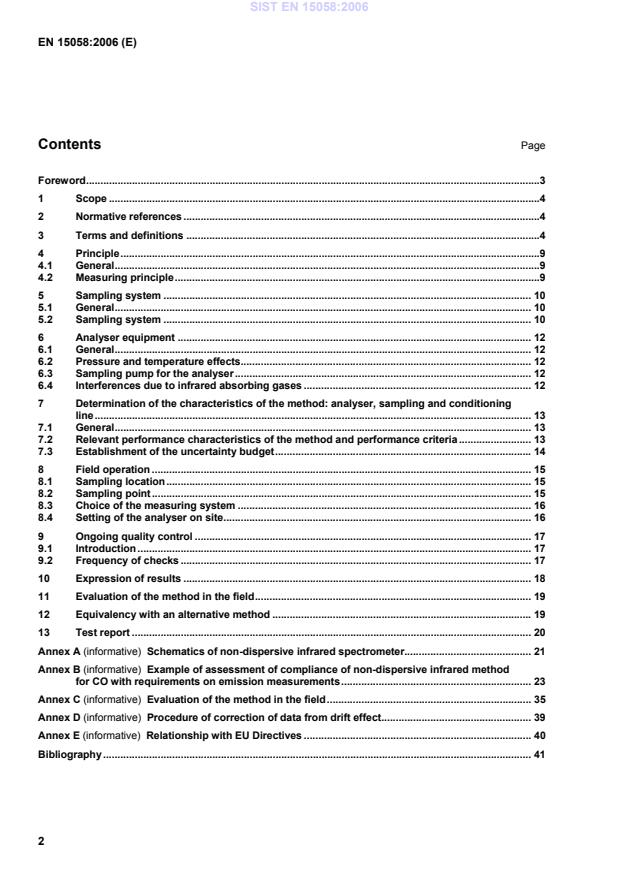 infrared detector; amplifier and signal processing system to give an electrical output proportional to the CO concentration. The standard of construction and vibration/corrosion resistance shall be suited to industrial environments and to the composition of the flue gas. In Annex A schematic diagrams are given of two types of non-dispersive infrared analysers. 6.2 Pressure and temperature effects The output signal of the analyser is proportional to the density of CO (number of CO molecules) present in the absorption cell and depends on the absolute pressure and temperature in the absorption cell. The effects of variations of pressure and temperature in the absorption cell should be taken into account by the manufac-turer. 6.3 Sampling pump for the analyser The sampling pump can be separate or part of the analyser. In any case, it shall be capable of operating within the specified flow requirements of the manufacturer of the analyser and pressure conditions required for the NDIR absorption cell. 6.4 Interferences due to infrared absorbing gases 6.4.1 General As various gases absorb infrared radiation, interference from these gases can occur when their infrared ab-sorption bands coincide or overlap the CO infrared absorption bands. The degree of interference varies among individual NDIR analysers. In general, gas correlation spectrophotometers are less sensitive to the influence of interferents. 6.4.2 Water vapour The primary interferent is water vapour. However water vapour interference should be minimised by using sampling and conditioning configuration 1 or 2. SIST EN 15058:2006