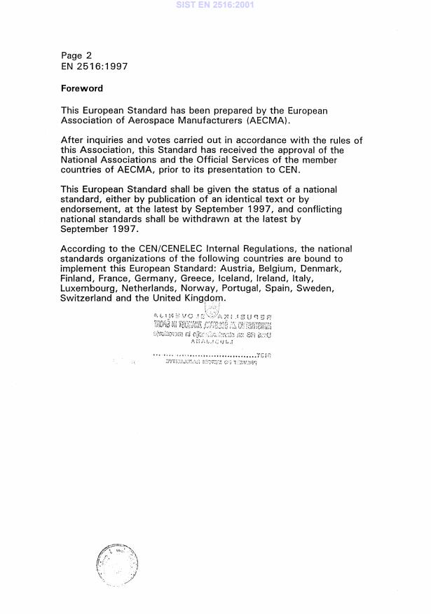Ta slovenski standard je istoveten z: EN 2516:1997