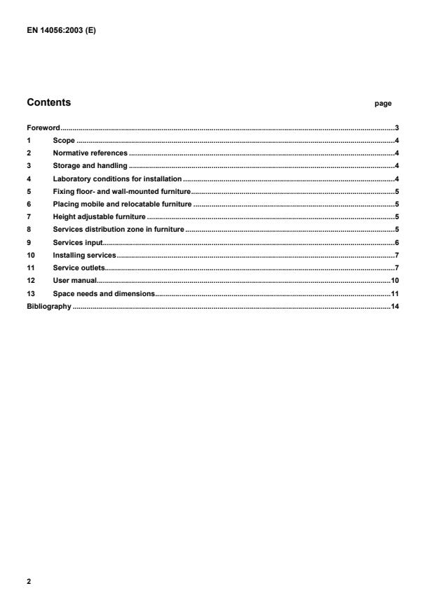 EN 14056:2003 is a standard published by the European Committee for Standardization (CEN). Its full title is "Laboratory furniture - Recommendations for design and installation". This standard covers: The European Standard gives guidance for the installation of laboratory benches, storage units and services and their connections and fittings.