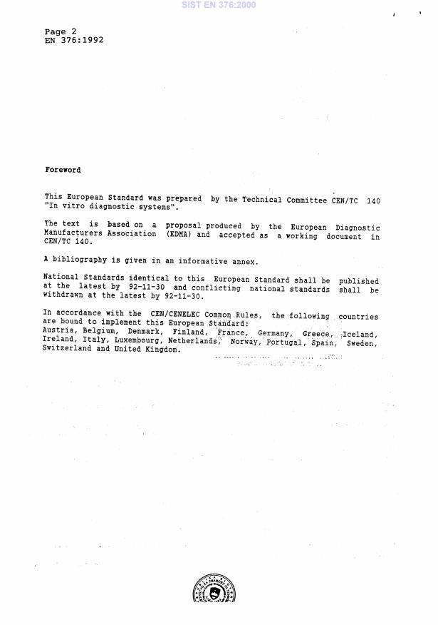 EN 376:1992 is a standard published by the European Committee for Standardization (CEN). Its full title is "In vitro diagnostic systems - Requirements for labelling in vitro diagnostic reagents for self-testing". This standard covers: This standard specifies requirements for the labelling of in-vitro diagnostic reagents which are intended for use in self-testing, i.e. for lay use. The term "self-testing" intends both patient self-testing (i.e. home-testing carried out by patients under the supervision of their physician) and consumer self-testing (i.e. testing carried out by the lay public on their own initiative).
