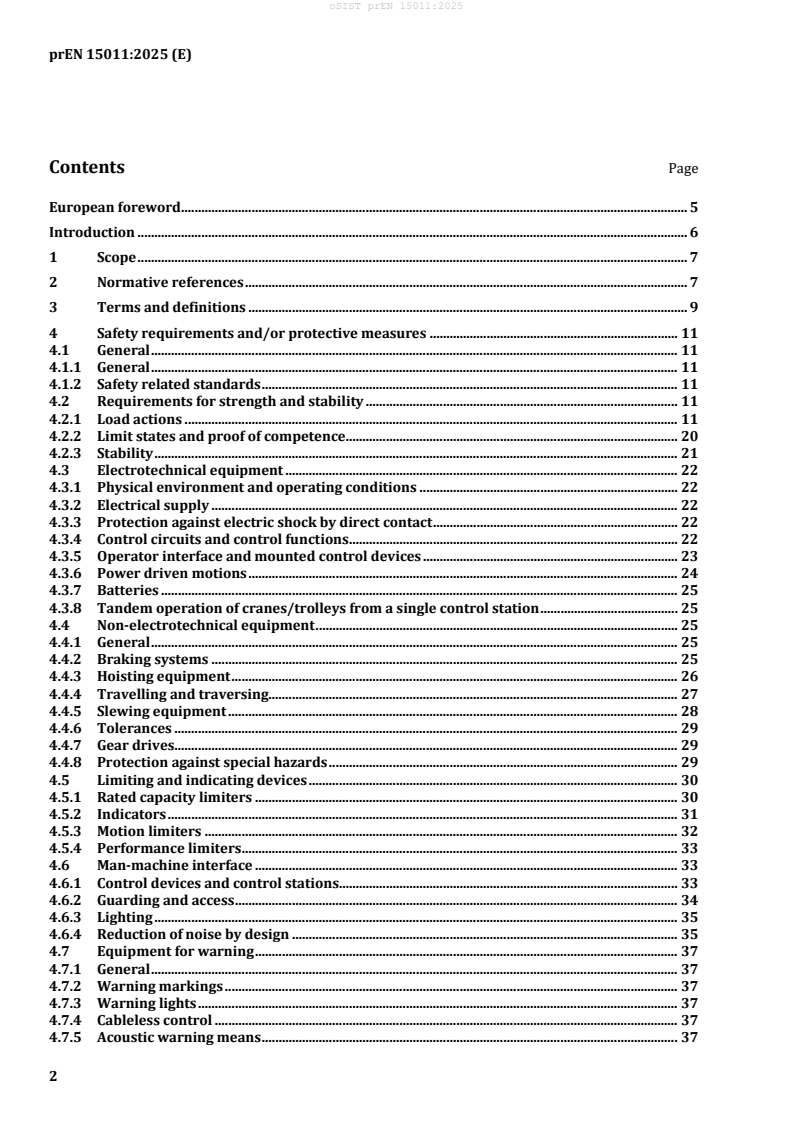 Keywords: prEN 15011:2025, bridge and gantry cranes standard, crane safety, CEN crane standard, load actions, stability, electrotechnical requirements, noise emission, crane verification.