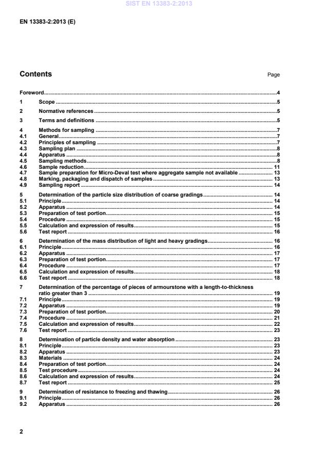 ratio greater than 3 . 19 7.1 Principle . 19 7.2 Apparatus . 19 7.3 Preparation of test portion . 20 7.4 Procedure . 21 7.5 Calculation and expression of results . 22 7.6 Test report . 23 8 Determination of particle density and water absorption . 23 8.1 Principle . 23 8.2 Apparatus . 23 8.3 Materials . 24 8.4 Preparation of test portion . 24 8.5 Test procedure . 24 8.6 Calculation and expression of results . 24 8.7 Test report . 25 9 Determination of resistance to freezing and thawing . 26 9.1 Principle . 26 9.2 Apparatus . 26 SIST EN 13383-2:2013
