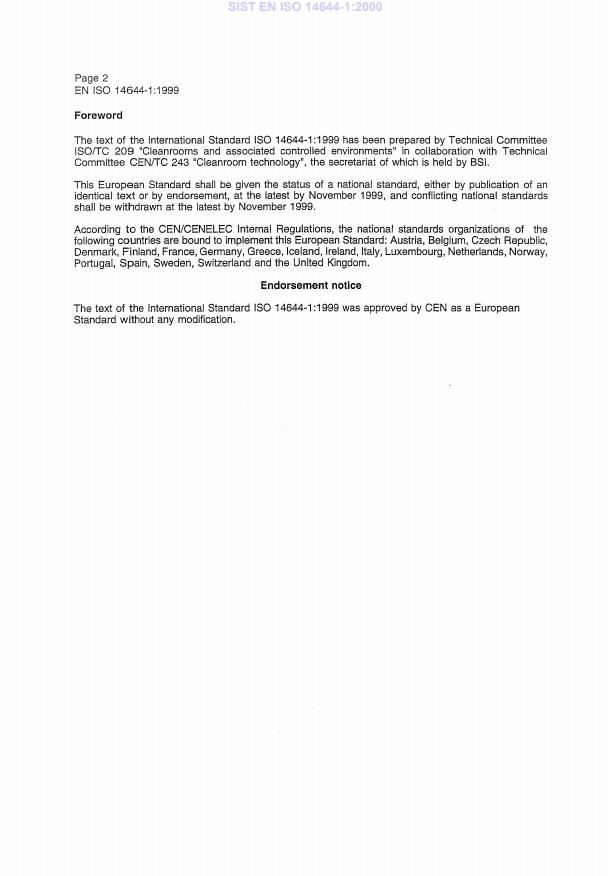 EN ISO 14644-1:1999 is a standard published by the European Committee for Standardization (CEN). Its full title is "Cleanrooms and associated controlled environments - Part 1: Classification of air cleanliness (ISO 14644-1:1999)". This standard covers: This Part of this European Standard specifies the classification of particulate cleanliness for cleanrooms and clean air controlled spaces in three possible occupancy states according to the number concentration of airborne particulate matter present.