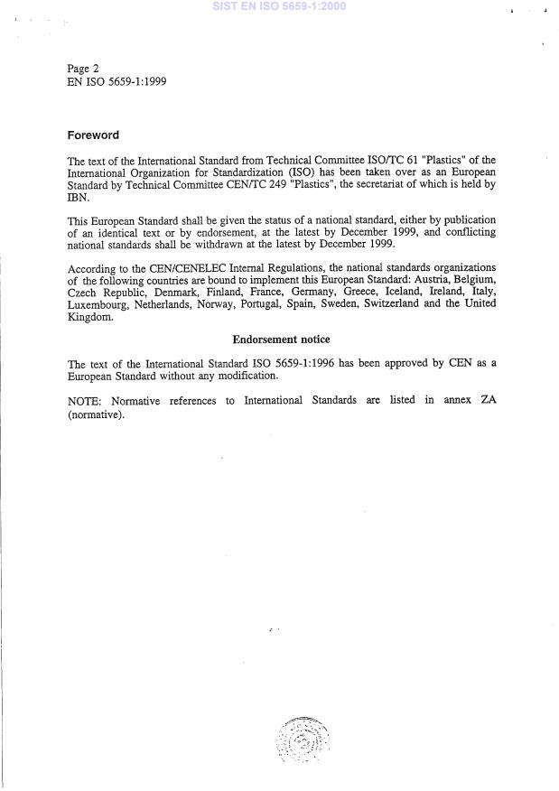 Plastics - Smoke generation - Part 1: Guidance on optical-density testing (ISO 5659-1:1996)