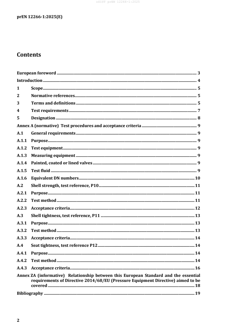 prEN 12266-1 (EN 12266-1:2025 draft) is a CEN standard that defines mandatory pressure tests, test procedures and acceptance criteria for production testing of industrial valves made of metallic materials. It establishes uniform requirements for pressure tests used for production, and which can also serve as type tests or acceptance tests. The document supersedes EN 12266-1:2012 and is intended to be used alongside valve product or performance standards.