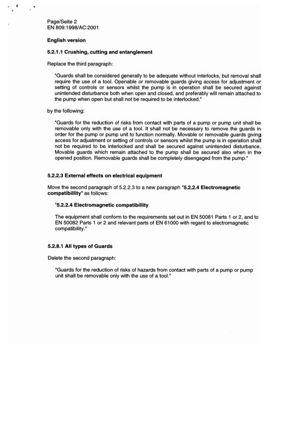 EN 809:1998/AC:2001