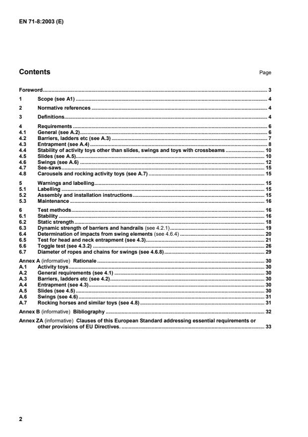 Rationale.30A.1Activity toys.30A.2General requirements (see 4.1).30A.3Barriers, ladders etc (see 4.2).30A.4Entrapment (see 4.3).30A.5Slides (see 4.5).30A.6Swings (see 4.6).31A.7Rocking horses and similar toys (see 4.8).31Annex B (informative)