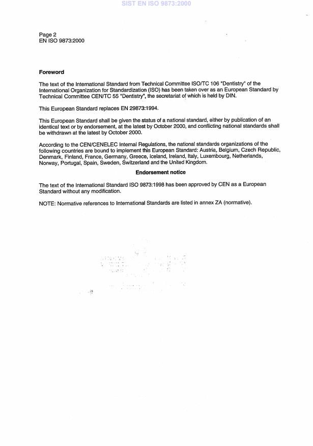 International Standard ISO 9873 was prepared by Technical Committee ISO/TC 106, Dentistry, Subcommittee 4,