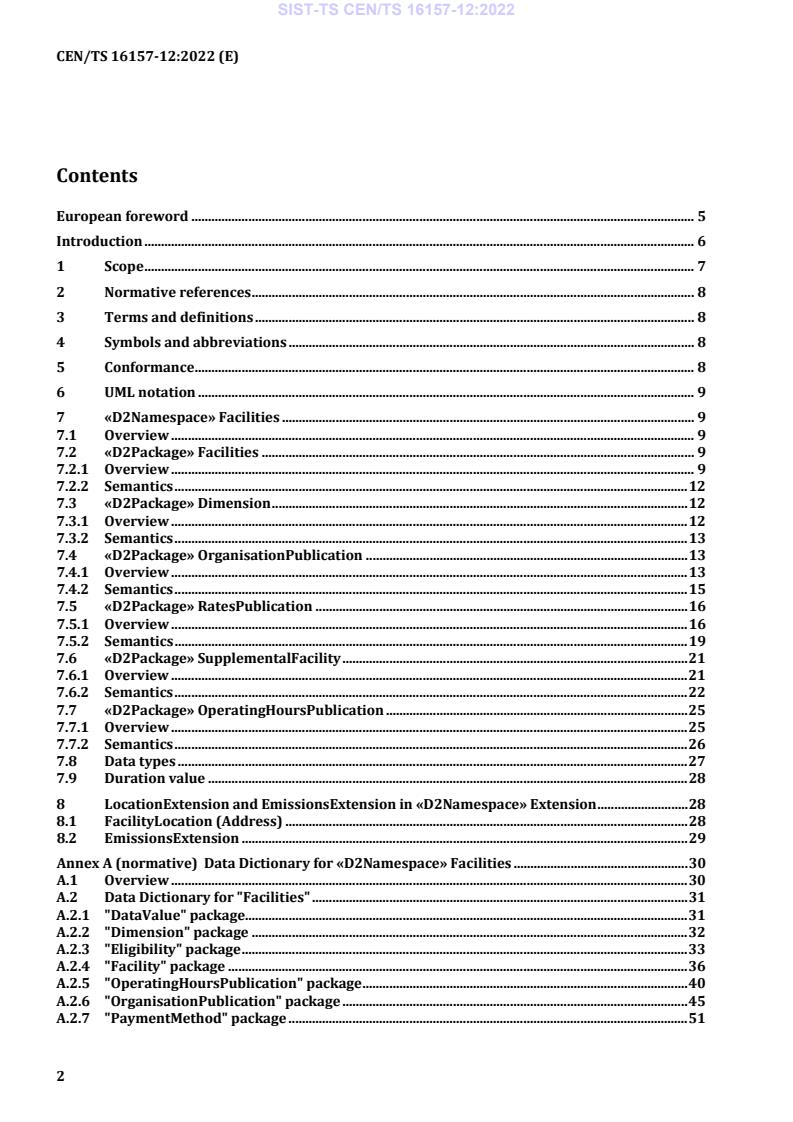 This Part of CEN/TS 16157 specifies the informational structures, relationships, association ends, attributes and associated data types required for publishing information about facilities within the DATEX II framework. This is specified as a DATEX II "Facilities" namespace, which is part of the DATEX II platform independent model, but this Part excludes those elements that are specified in EN 16157-2 (Location referencing) and EN 16157-7 (Common data elements).