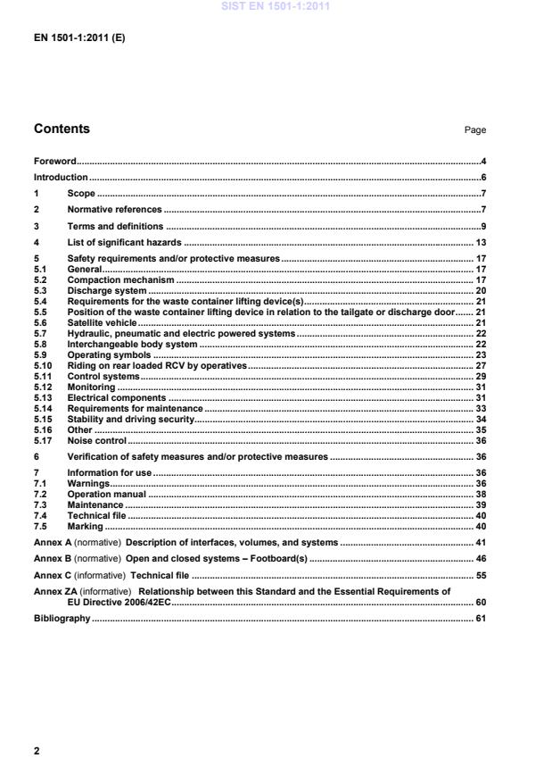 Relationship between this Standard and the Essential Requirements of EU Directive 2006/42EC . 60Bibliography . 61 SIST EN 1501-1:2011