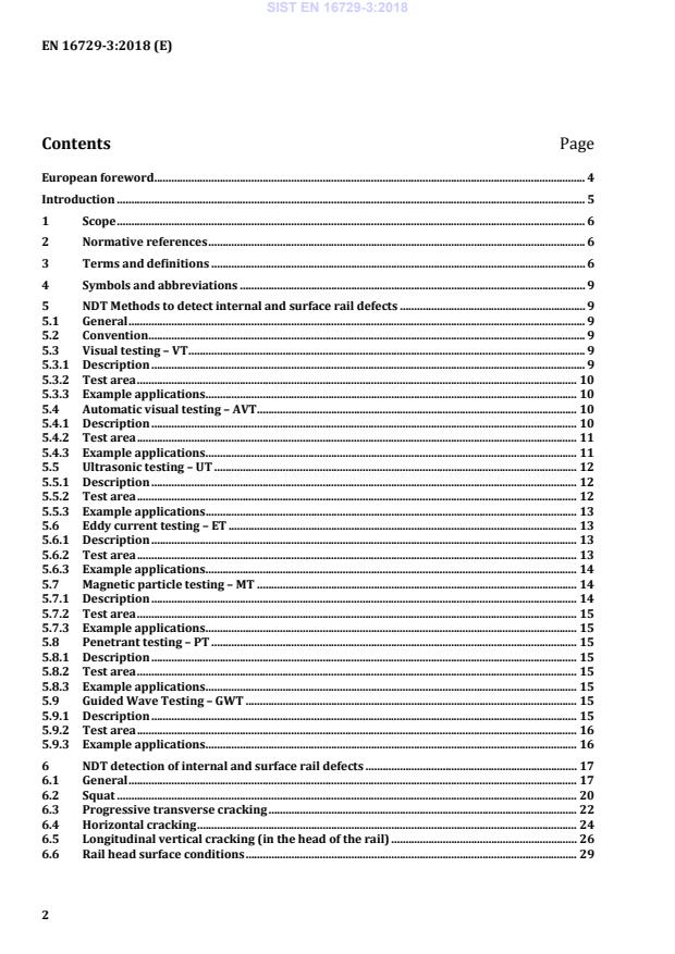 Ta del tega evropskega standarda določa metode neporušitvenega preskušanja (NDT), ki se uporabljajo za zaznavanje notranjih in površinskih napak na progi ter primernost vsake metode za zaznavanje in ocenjevanje običajnih napak na tirih, nameščenih na progi.