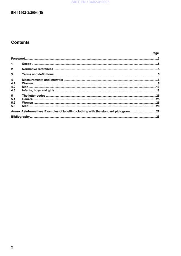 EN 13402-3:2004 is a standard published by the European Committee for Standardization (CEN). Its full title is "Size designation of clothes - Part 3: Measurements and intervals". This standard covers: This draft European Standard establishes a body sizing system to be used for compiling standard garment sizes for infants, men and boys, women and girls. Garment dimensions are not contained in this European Standard. Examples of labelling clothing with the standard pictogram (see EN 13402-1) are given in Annex A (informative) in this standard.