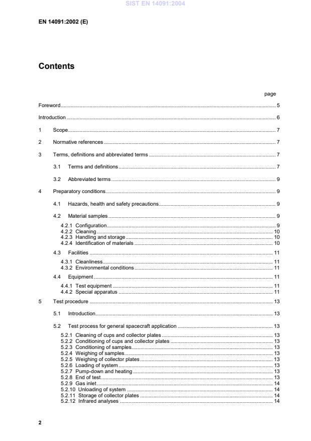 EN 14091:2002 is a standard published by the European Committee for Standardization (CEN). Its full title is "Space product assurance - Thermal vacuum outgassing test for the screening of space materials". This standard covers: This European Standard specifies a thermal vacuum test to determine the outgassing properties of materials proposed for use in the fabrication of spacecraft and associated equipment, for vacuum facilities used for flight hardware tests and for certain launcher hardware. This standard covers the following: - critical design parameters of the test system; - critical test parameters such as temperature, time, pressure; - material sample preparation; - conditioning parameters for samples and collector plates; - presentation of the test data; - acceptance criteria; - certification of test systems and their operators by audits and round robin tests. The test described in this standard is applicable for all unmanned spacecraft, launchers, payloads, and experiments. The test is also valid for external hardware of inhabited space systems and for hardware to be used in terrestrial vacuum test facilities. The acceptance criteria for a material, based upon the outgassing test data, depends upon the application and location of the material and can be more severe than the standard requirements as given in 7.2.
