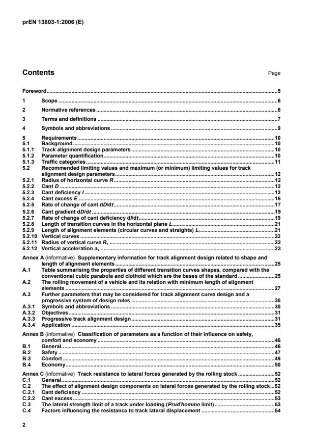 - Informative annexes on curve shapes, lateral track resistance, tilting trains and risks of using maximum/minimum limits