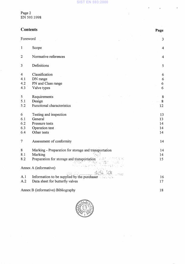 EN 593:1998 is a standard published by the European Committee for Standardization (CEN). Its full title is "Industrial valves - Metallic butterfly valves". This standard covers: This standard specifies requirements for butterfly valves having metallic bodies of designations PN 2,5 to PN 40 and Class 125 to Class 300 inclusive, in the size range DN 40 to DN 2000 for use in flanged or butt welding piping systems and used for isolating, regulating or control applications. For application as industrial process control valves, see prEN 1349 and EN 60534-2-1.