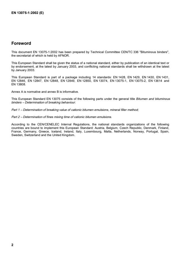 This document EN 13075-1:2002 has been prepared by Technical Committee CEN/TC 336 "Bituminous binders",